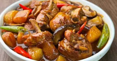 把雞放鍋里蒸一蒸,雞肉鮮嫩多汁,蔥香濃郁,美味可口