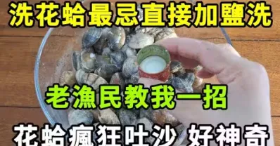 洗花蛤,最忌直接加鹽洗,老漁民教我1招,花蛤瘋狂吐沙,好神奇。